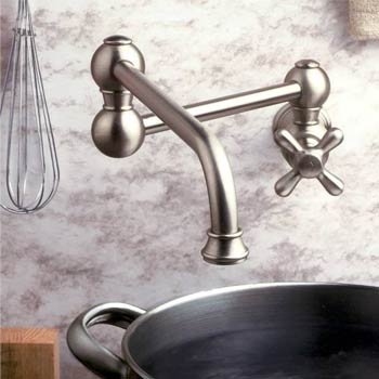 Jaclo KPF-20 Kitchen Faucets Wall Mounted Pot Filler With Options Of Handles Cross Or Levers - Single valve Luxury Pot Filler Folding Spout Opens 22" For Larger Ranges Single valve Luxury Pot Filler Folding Spout Opens 22" For Larger Ranges Will fold flat to fit snugly against the wall. .