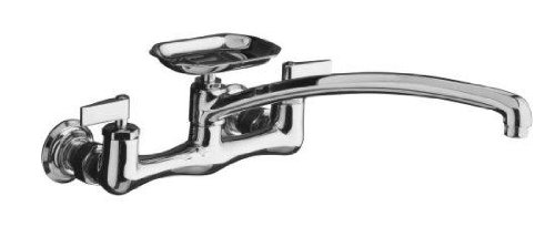 Kohler K-7856-4 Clearwater sink supply faucet with 12" spout reach and lever handles, Vibrant Brushed Nickel This 12" spout reach on the Clearwater faucet has an ample reach to fill big pots easily. It features solid metal construction, lever handles, Valvet valves and a soap dish.Kohler K-7856-4 Clearwater sink supply faucet with 12" spout reach and lever handles, Vibrant Brushed Nickel Features:; Low-flow aerator option available (please see latest price book)