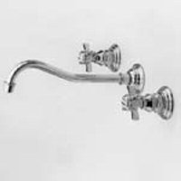 Wall Mounted Kitchen FaucetCross HandlesSpout C-C 9-3/8"8" CentersLess Rough-In Valve & Sink DrainRough-In Valve RequiredRough-In Valve Must Be Added to Complete Faucet Trim KitRequires NB1-532 (Rough-in Valve)
