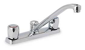 Kitchen Faucet, Handle Type 2H Knob, Handle Finish Chrome, Material of Construction Brass, Faucet Finish Chrome, Spout 9 In, Standard Spout, Number of Holes 3, Deck Mounting, Mounting Centers 8 In, Connection 1/2 MIPS In, Flow Rate 2.2 GPM, Standards CSA, NSF, IAPMO, California Proposition 65, Warranty Length 5 Years