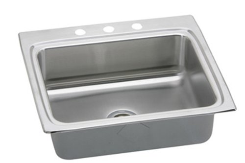 Elkay LRADQ2522-60-3 Lustertone Stainless Steel Sink with 3 holesFor over 80 years Elkay has created high quality, innovative sinks and faucets that consumer's count on to deliver unprecedented levels of style and function. They offer the most extensive product line available, so regardless of your dream, design or demands, they have just the sink or faucet for you.Elkay LRADQ2522-60-3 Lustertone Stainless Steel Sink with 3 holes Features:; 25" x 22"; Highest quality sink seamlessly formed of #18 gauge, type 304(18-8) nickel bearing stainless steel. Self-rimming..; Bowl Depth: 6"; Coved Corners: 1-3/4" vertical and horizontal radius.; Bowl Recess: 3/8" drop ledge with a raised faucet deck.; Finish: Exposed surfaces are hand blended to a lustroushighlighted satin finish.; Underside: LR(Q)2522 is fully protected by heavy duty SoundGuard undercoating to dampen sound and prevent condensation.LRAD(Q)2522 is fully undercoated to dampen sound andprevent condensation.; LRAD(Q)2522 Drain Opening: 3-1/2" and located centered leftto-right and off-center front-to-back as illustrated.; Three Hole