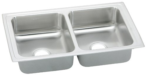 Elkay PSFR3319 Gourmet Pacemaker 33-Inch by 19-1/2-Inch Double Bowl Kitchen Sink, Pacemaker Bright Satin Finish Feature